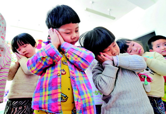 孩子们在老师的指导下做睡眠游戏。 (新华社资料片) |