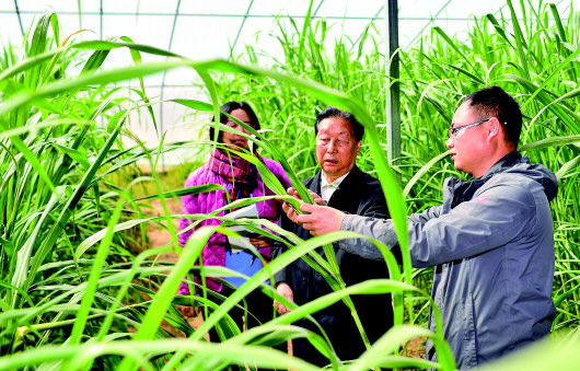 在刘昌富的大棚里,菌草苗已长到一人多高,郁郁葱葱十分壮观。林占熺详细询问各项生产数据后,对刘昌富伸出大拇指说:“老刘,这次你又带了个很好的头,希望你在乡村振兴中再立新功!”