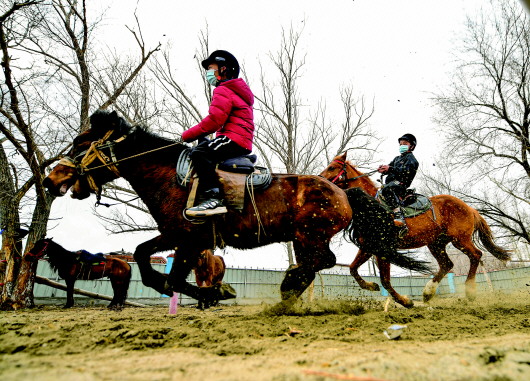 马术在新疆阿勒泰地区布尔津县有较强群众基础。县教育部门已将马术列为中小学生特色体育课程,全县已有三所学校开设马术课,窝依莫克镇寄宿制中学就是其中之一。该校自2019年起与当地一家马术基地合作,为四至八年级学生教授马术课。孩子们大都来自牧民家庭,对马并不陌生,迅速与马儿成为亲密伙伴,轻松“解锁”了基本的马术技巧。