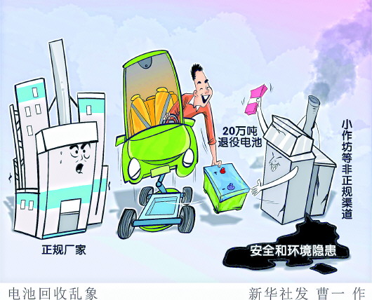 然而,作为新能源汽车产业的重要一环,退役电池回收暗藏风险。业内人士指出,到2020年我国动力电池累计退役量约20万吨,其中大量流入小作坊等非正规渠道,带来安全和环境隐患。如何避免新能源汽车“爆发式增长”带来“爆发式污染”,值得警惕。
