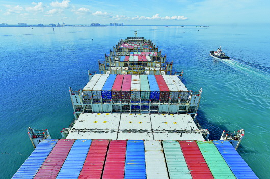 ![]() 这是2020年9月23日拍摄的一艘行驶在海南洋浦港海域的集装箱船。