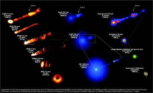 科学家利用事件视界望远镜(EHT)对这个黑洞进行观测的同时,还协调了全球19台望远镜阵对这个黑洞及其喷流,开展了迄今频率覆盖最广的多波段同步观测,成功收集到2017年3月底至5月中旬的观测数据。