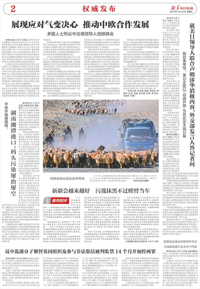 | ( 2021-04-18 ) 稿件来源:新华每日电讯 权威发布 |