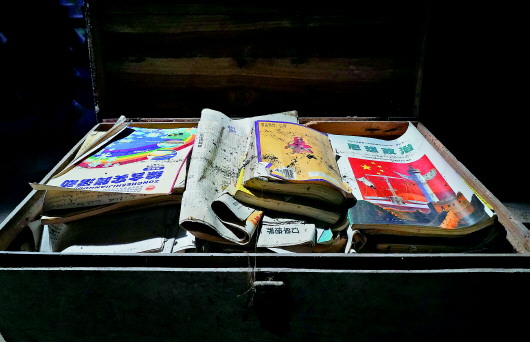 在炬光村的黄国俊家中,保存着黄国平少年时期用过的课本(4月19日摄)。