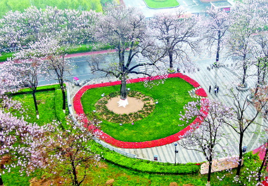 新华社郑州4月20日电(记者双瑞、翟濯)谷雨时节记者再访兰考,这座黄河边的小城满城飘香,被大片淡紫色的泡桐花所笼罩。