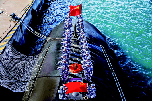海军某潜艇基地官兵举行重温入党誓词仪式(资料照片)。 新华社发(王青摄)