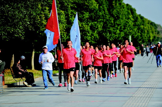 2013年11月30日,“为江豚来奔跑”接力长跑活动在汉口江滩举行。 新华社记者郝同前摄 |