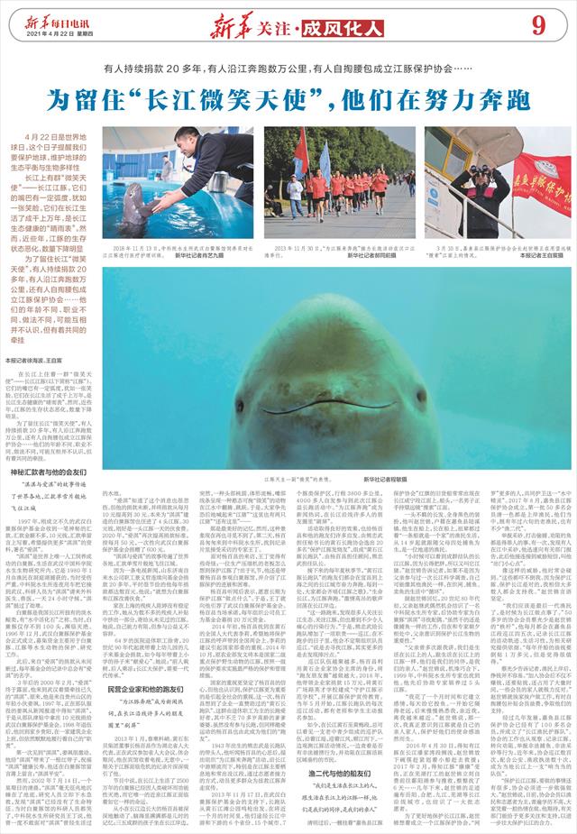 为了留住长江“微笑天使”,有人持续捐款20多年,有人沿江奔跑数万公里,还有人自掏腰包成立江豚保护协会……他们的年龄不同、职业不同、做法不同,可能互相并不认识,但有着共同的牵挂。