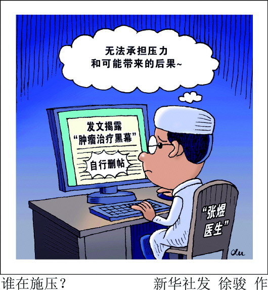 4月2日,北京大学第三医院肿瘤内科主治医师张煜用自有账号在“知乎”平台公开质疑有些医生“蓄意诱骗治疗”。4月18日,张煜又发表长文,题为《写给我挚爱的国家和众多肿瘤患者及家属——请与我一起呼吁,请求国家早日设立医疗红线,遏制肿瘤治疗中的不良医疗行为》。