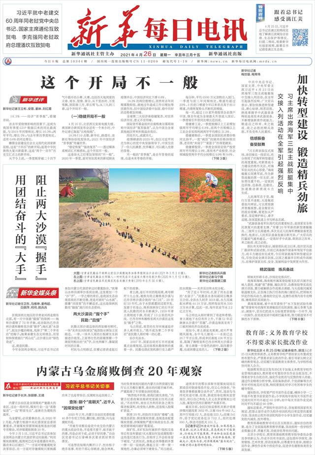 | ( 2021-04-26 ) 稿件来源:新华每日电讯 要 闻 |