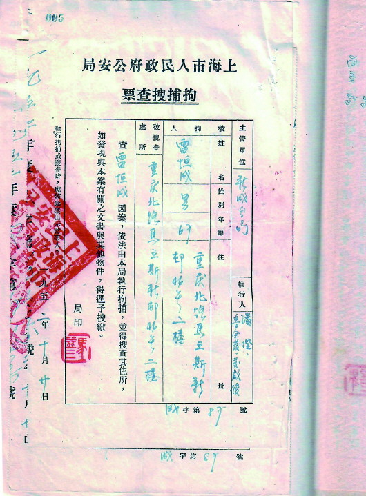 1952年秋,上海市公安局新成分局接到了一起由市局转来的公安部漆封、挂号检举信。信中写道:“谨向政府举报,数年以前,曾在北京西北角寺庙露面的‘了明禅师’,实系认贼作父的汉奸、特务分子。民国十六年,就是他率领军警搜查苏联大使馆,致李大钊和先烈数十人惨受绞刑而殉难……望政府迅即觅取线索,务求捕获,以彰国法。”信中检举一个叫“雷恒成”的人,藏匿于上海跑马厅附近马立斯路(今重庆北路)一带,以“卖卜”谋生,并透露,此人有一块前清皇帝赏赐的金挂表,平时几乎从不离身,嘴里还镶有几颗金牙,系残害李大钊的主谋之一。