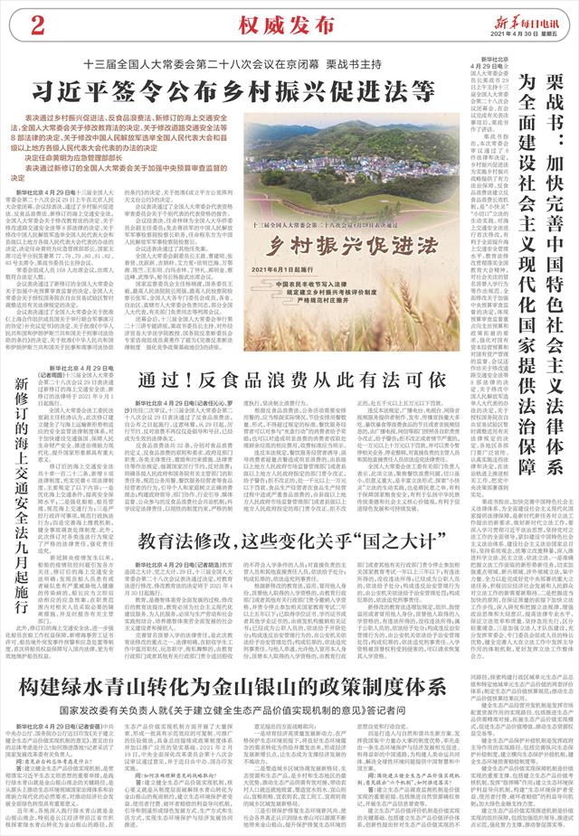 | ( 2021-04-30 ) 稿件来源:新华每日电讯 权威发布 |