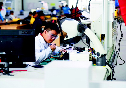 工匠技艺的比拼要求精确,差之毫厘就会谬以千里。随着技术的不断进步,比赛内容也会随之调整,其中仅电子技术项目就分为硬件设计、嵌入式程序设计和故障维修与记录3个模块,考核选手设计、仿真、程序编写、焊接等综合能力,评分细则多达上百条。竞赛资料全是英文的,阅读和理解难度大,梁攀就在翻译老师的帮助下硬啃“天书”、反复求教;比赛用的电路板密密麻麻地分布着200多个点位,必须用烙铁将每一个点位都焊上锡,他就反复练习精益求精,将焊接时间从两三个小时压缩到一个小时……