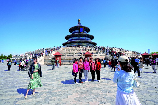5月4日,游客在天坛公园祈年殿前参观游览。新华社记者鞠焕宗摄 |