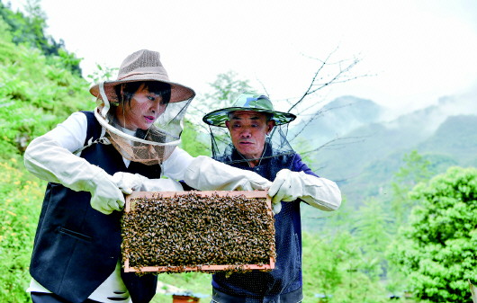 面对家乡的绿水青山,袁小梅还有很多计划。因为目前蜂蜜产量跟不上销量,她要把蜜蜂养殖产业发展壮大,培养和带动更多的乡亲们参与到这项“甜蜜事业”中来,一起增收致富。“要将家乡这连绵的绿水青山转为村民的‘绿色银行’,这是我心里的甜蜜梦想。” |