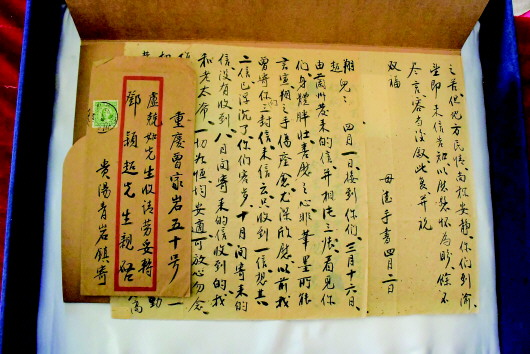 在天津周恩来邓颖超纪念馆拍摄的杨振德写给女儿邓颖超和女婿周恩来的家书(3月31日摄)。 新华社记者周润健摄 |