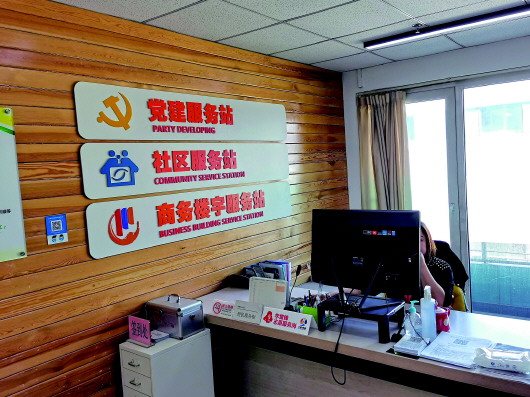 “我们秉持‘办公区域最小化、服务面积最大化’的理念,将党建服务站、社区服务站、商务楼宇服务站多站合一、一口办理,将节省出来的空间作为社区居民以及辖区企业的公共服务区域,让华贸中心社区成为一个‘接地气’的社区。”刘东风说。