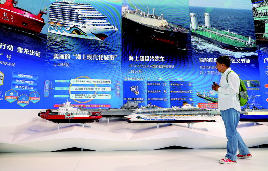 5月10日,参观者在观看船舶模型展品。当日,2021年中国品牌日活动在上海展览中心举行。 新华社记者方喆摄