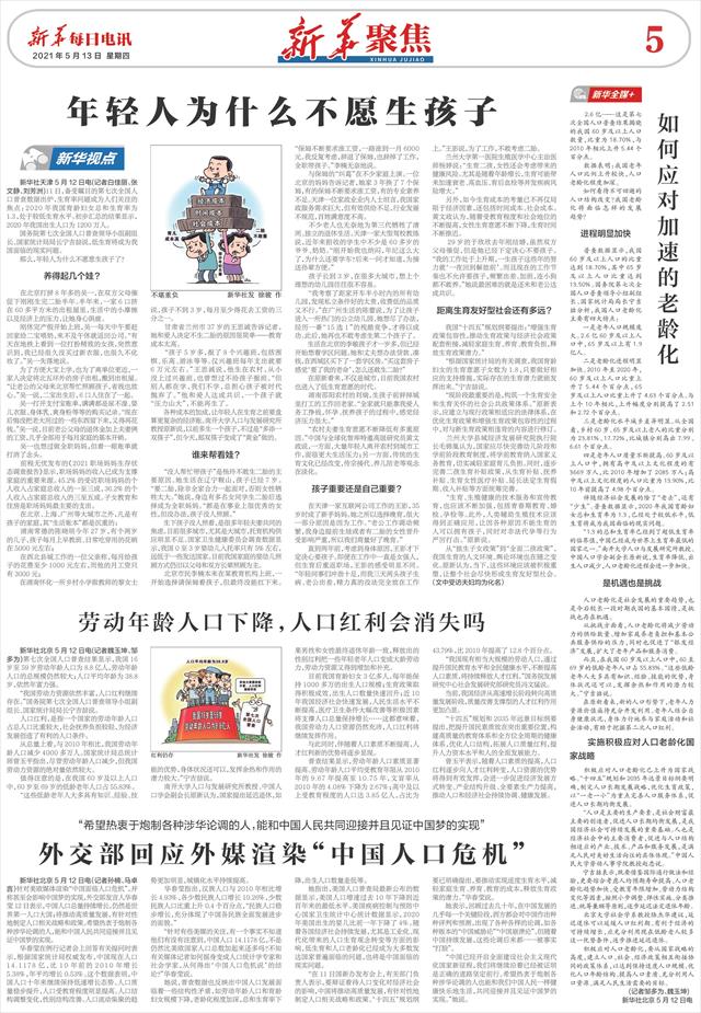 “在11日国新办发布会上,有关部门负责人表示,要辩证看待人口变化对经济社会的影响,中国将推动高质量发展,有针对性地制定人口相关战略和政策。‘十四五’规划纲要已明确提出,要推动实现适度生育水平,减轻家庭生育、养育、教育的成本,释放生育政策的潜力。”华春莹说。