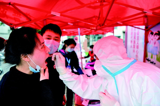 ![]() 5月16日,在肥西县上派镇一小区,居民接受核酸检测。近日,安徽省合肥市肥西县上派镇卫星社区金云国际商住楼被调整为中风险地区,肥西县一线医护人员、防疫人员、社区工作人员等坚守岗位,全力战“疫”。新华社记者刘军喜摄 |