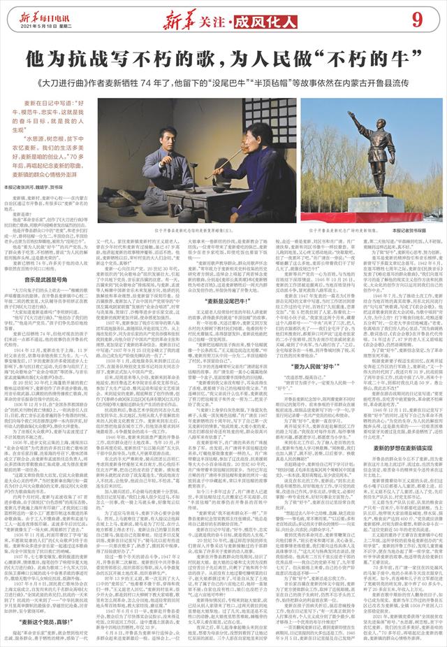 “麦新常说‘我不能和群众不一样’。”开鲁县麦新纪念馆宣教部主任张婧说,“他总是将自己最好的东西献给百姓。”