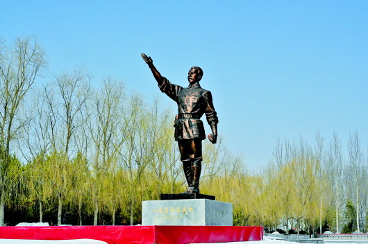 位于开鲁县麦新纪念广场的麦新铜像。 本报记者贺书琛摄 |