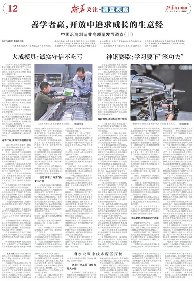 王哲君说话乡音颇重,却有股天然的亲和力。他坦言,这样看重合作伙伴间的信任,也是因为“诚实守信”这四个字,给大成模具带来过实实在在的好处。