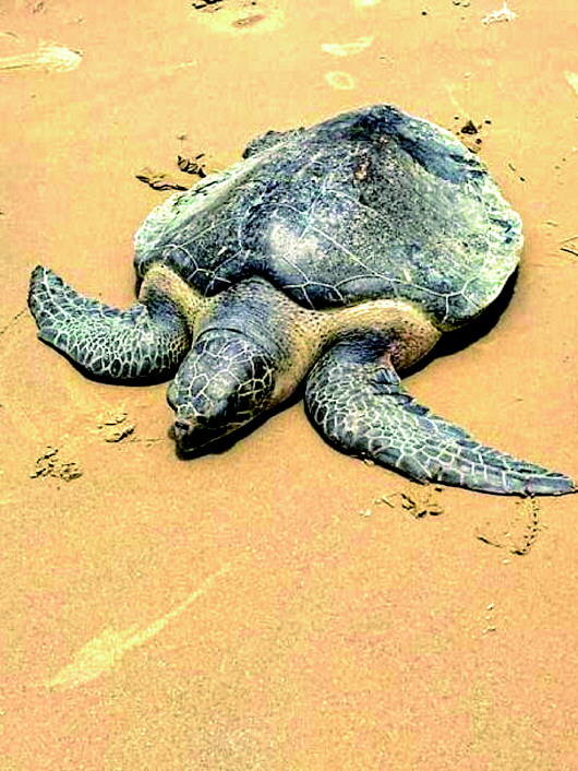 这是5月17日在尼日利亚拉各斯市一处海滩上拍摄的一只海龟。新华社发(奥耶容可·阿德格比勒摄) |