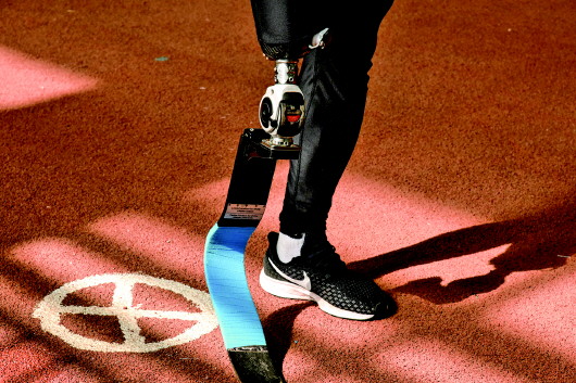 “假肢是我的好朋友,我身体的一部分。”身材高大的李茂大总是随身背一个书包,包里专门装着这支专业的跑步假肢。换上跑步假肢后,李茂大只在塑胶跑道等软底的场地才敢使用,如果要经过水泥砂石路面,他会蜷起假肢腿,用另一只腿一蹦一跳地跳过路面,直到跳到塑胶跑道才敢着地。
