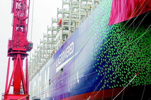 这是五月二十六日在上海拍摄的超大型双燃料集装箱船“达飞·特罗卡德罗”号。新华社记者丁汀摄
