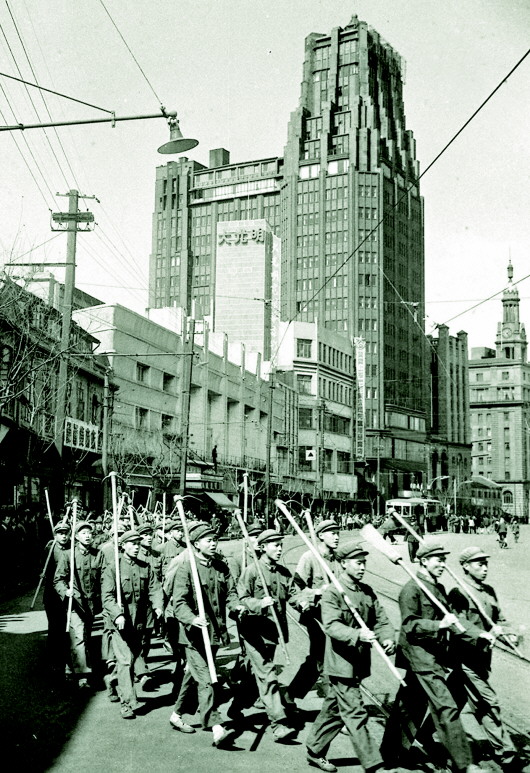 上海解放后,连队随大部队进驻上海,改编为内卫一团二营八连,负责在南京路等地巡逻执勤。