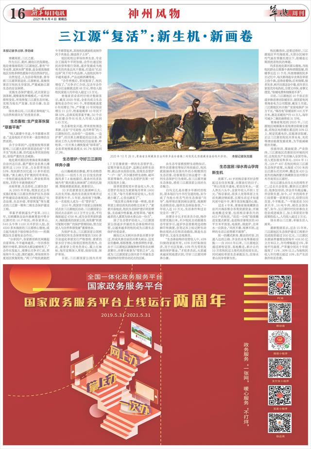 实施生态保护建设,试点国家公园体制,调整畜牧养殖模式,一系列举措和变化,有效修复三江源生态环境,实现当地生产发展、生活小康、生态优美。