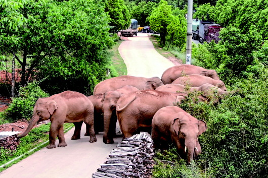 六月四日在昆明市晋宁区双河彝族乡拍摄的野象。 新华社发 |