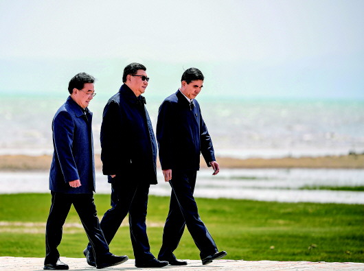 图为8日下午,习近平在海北藏族自治州刚察县青海湖仙女湾考察。 新华社记者申宏摄 |