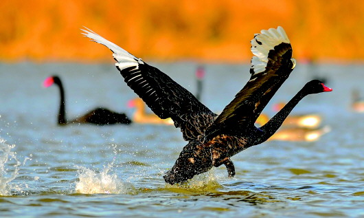 在黄河三角洲拍摄的黑天鹅(2012年10月31日摄)。 新华社记者郭绪雷摄 |