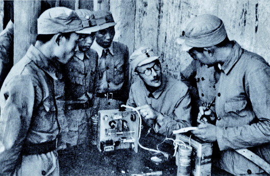 林迈可为晋察冀军区无线电技术高级训练班学员授课(资料照片)。 |