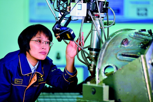 由于这是国外机型,机匣采购渠道不畅通。怎么办?经过反复分析,孙红梅发现关键就是要控制焊接变形超规定的问题,该机匣的叶片安装部位要求精度高,允许的尺寸公差仅为0.2毫米,只有引进激光焊等新技术才有可能解决难题。
