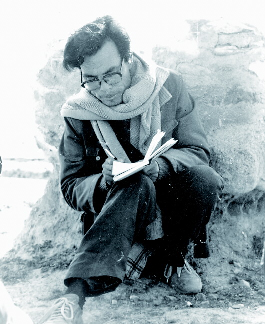 这是罗开富在长征路上的老爷山烽火台上写稿。 受访者提供
