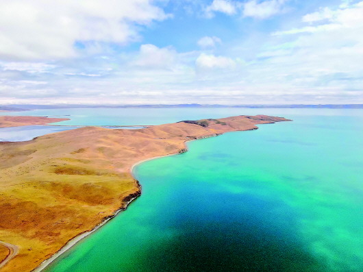 鄂陵湖,藏语“青蓝色长湖”,水面浩瀚无际。站在湖边,恍惚觉得眼前是大海,山峦合围着她蝴蝶形的身姿。这个季节,几百种鸟类盘旋飞舞,此起彼伏。
