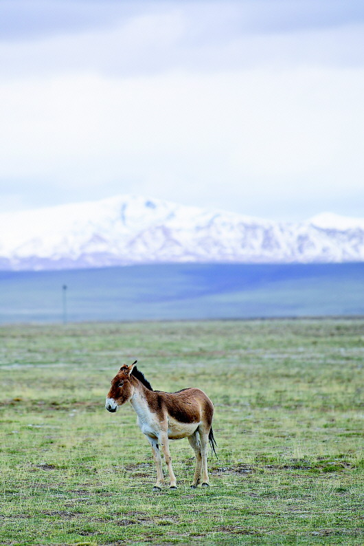 5月25日,一只藏野驴在黄河源区活动。新华社记者张龙摄 |
