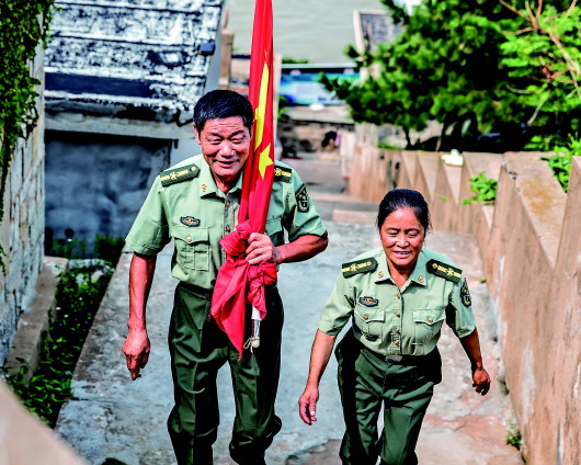 王继才夫妻俩每天做的第一件事就是在岛上升起五星红旗。