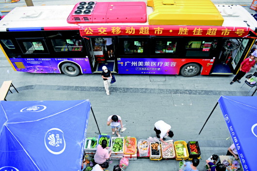 连日来,广州推出公交移动超市服务,用公交车把食品和日用品送进疫情管控区,方便居民在家门口购物。