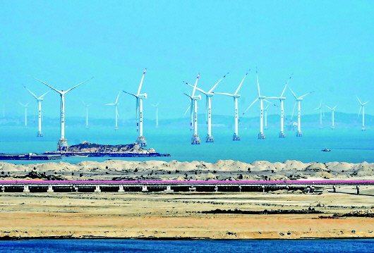 位于福建福清兴化湾的这座风电场是全球首个大功率海上风电样机试验风场,装机容量为35.74万千瓦,年发电量14亿千瓦时。