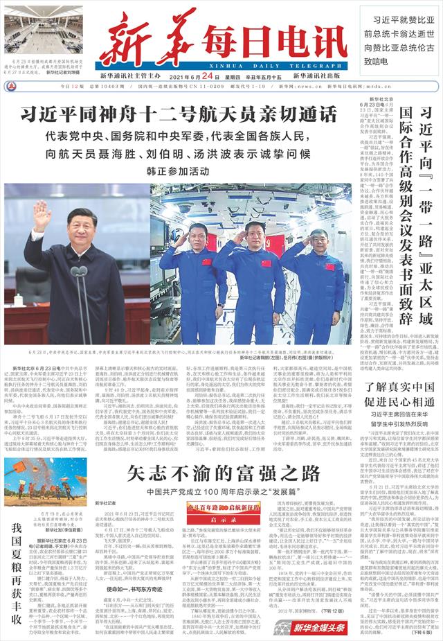 | ( 2021-06-24 ) 稿件来源:新华每日电讯 要 闻 |