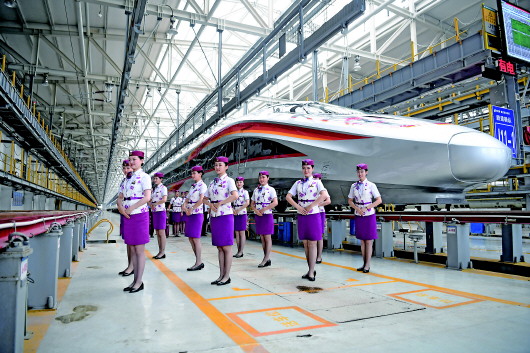 右图:6月23日,CR400AF复兴号智能动车组在中国铁路成都局集团有限公司重庆车辆段西动车所正式亮相,该动车组将于6月25日投入成渝城际铁路运营。
