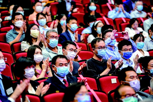 6月23日,在香港理工大学,听众在讲座结束后鼓掌。 |