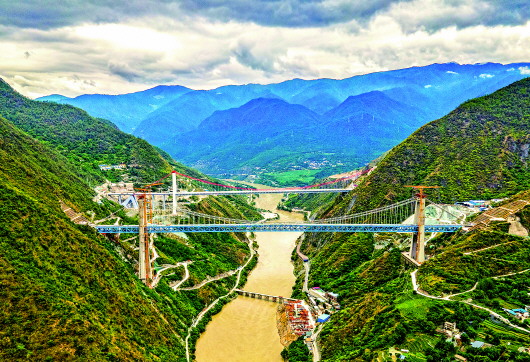 6月24日拍摄的丽香铁路金沙江特大桥(无人机照片)。目前,丽江至香格里拉铁路(丽香铁路)建设正在有序推进,路基、桥梁已完成97%,全线20座隧道已贯通16座,3座车站站房已全面进入装饰装修,铺轨工程完成13公里。 新华社记者王冠森摄