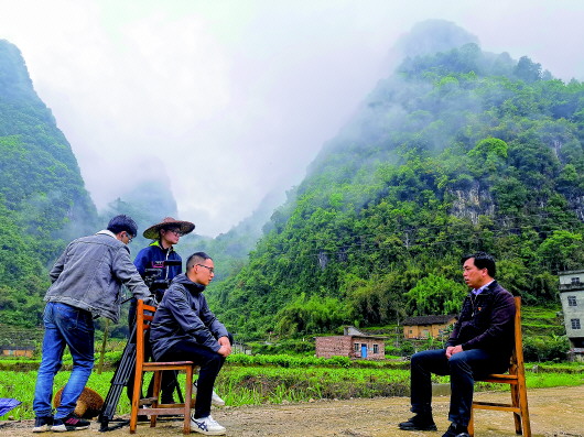 《我的朋友是党员》导演杨定都与主创眭黎曦在广西扎洞村采访拍摄。 |