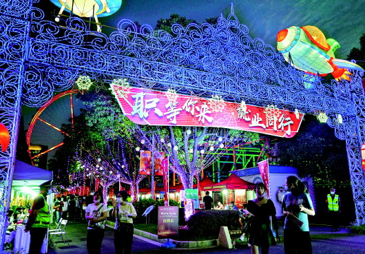 当晚,上海市闵行区高校应届毕业生、启航青年专场招聘活动在锦江乐园举行。约200家招聘单位参与此次活动,提供3200余个招聘岗位。新华社记者刘颖摄