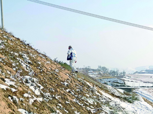 这可难住了戴维德。他在县城参加完会议,要赶回羊场实施人工授精。如果他赶不到,前半个月的工作就白忙活了。而雪后山路结冰打滑,汽车开不上去。戴维德建议同行人员,干脆步行上山。